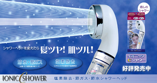 シャワーヘッドは、ビタミン剤を取り付けることができるタイプ。